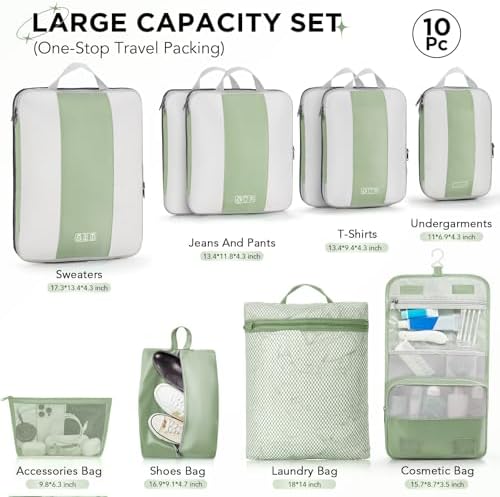 Ready for Any Adventure – Whether you’re heading out for a weekend getaway, a business conference, or a month-long backpacking trip, This high-capacity 10-piece compression cet seamlessly accommodates 20-32-inch suitcases of all types. We’re here to ensure you travel smarter, pack better, and enjoy every moment of your journey with peace of mind.