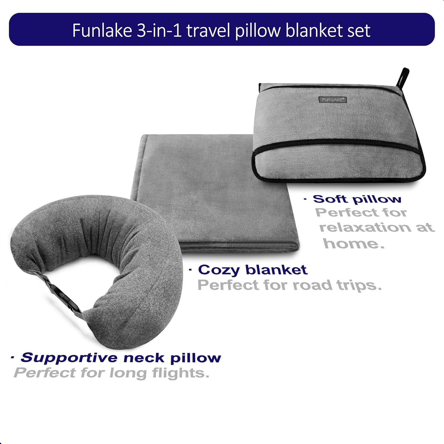 Funlake 3-in-1 travel pillow blanket set