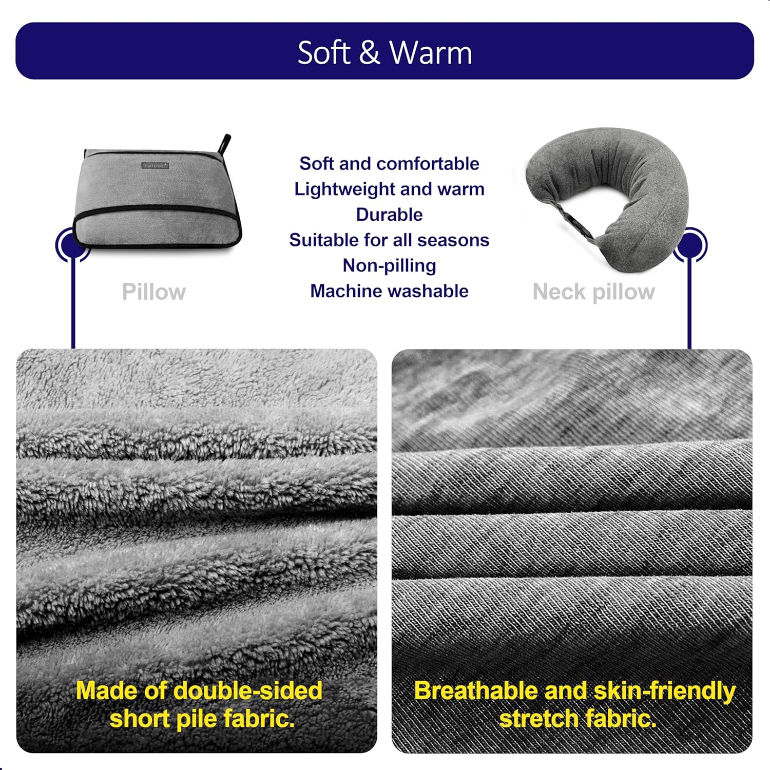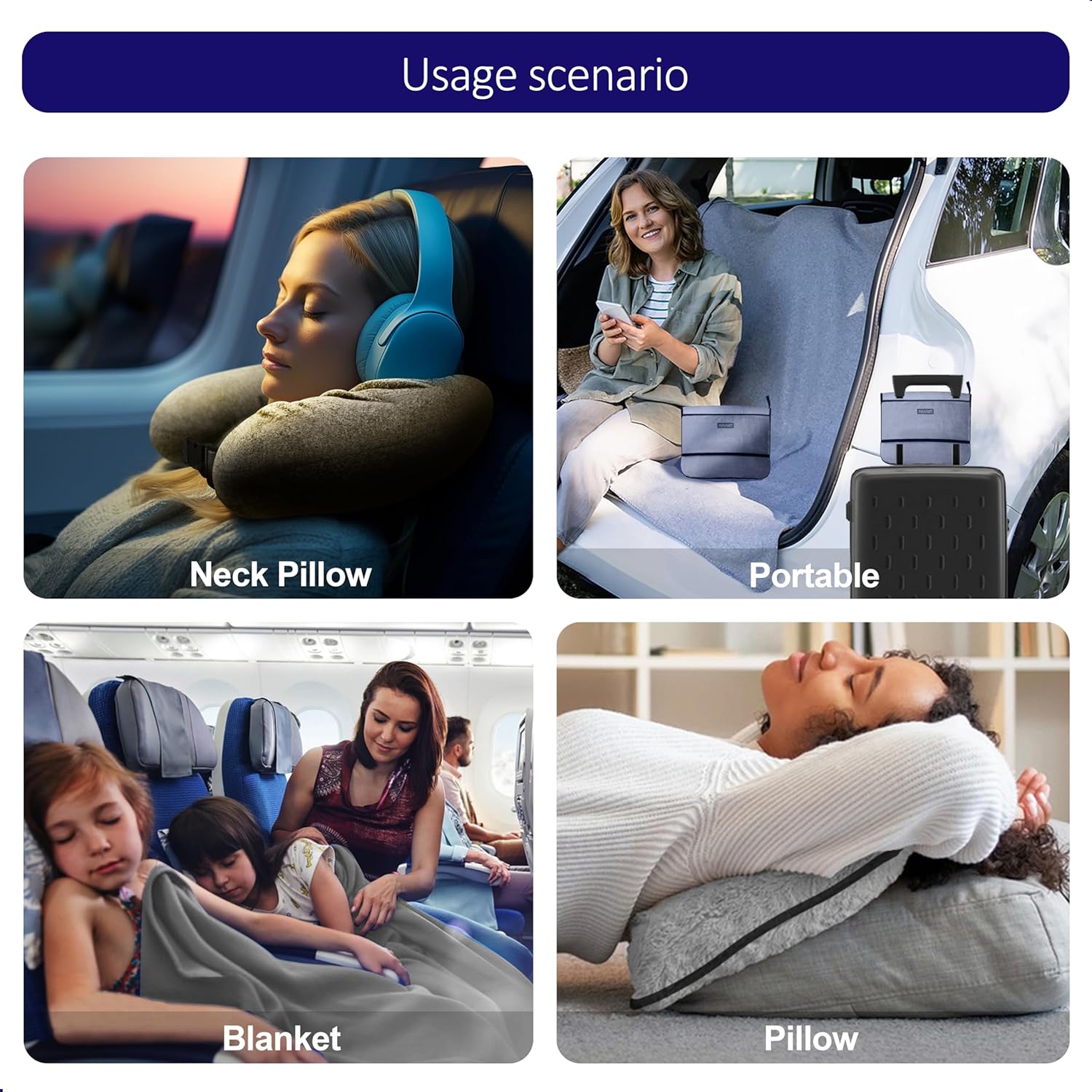Ultimate 3-in-1 Comfort: Experience unparalleled versatility with Funlake’s 3-in-1 design, seamlessly transitioning from a plush pillow to a cozy blanket and a supportive neck pillow. Perfect for long flights, road trips, and relaxation at home. “Wherever your journey takes you, let comfort follow.”
