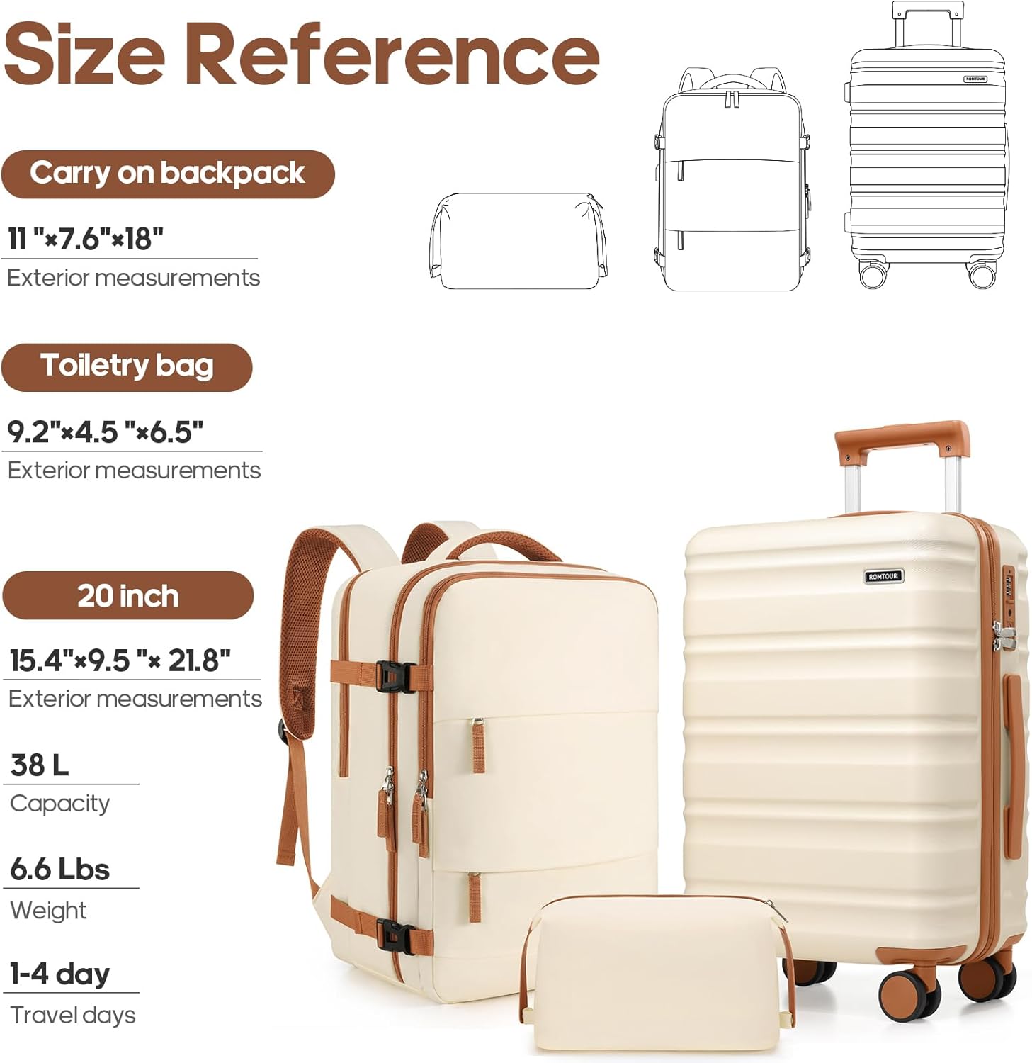 【A Versatile 3 – Piece Travel Set】This set includes a 20 – inch carry – on suitcase, a handy travel backpack, and a practical toiletry bag. You can easily combine them according to your travel needs, keeping all your essentials well – organized and accessible.