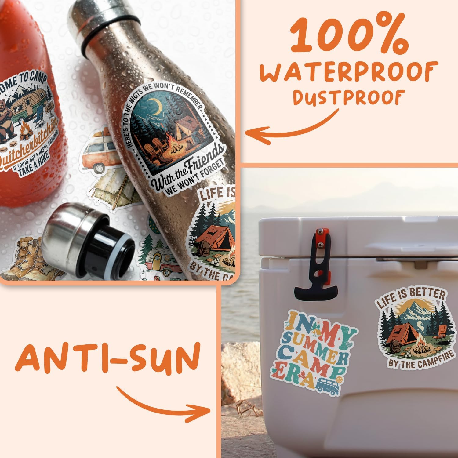 ✅ Easy Decoration for Personal Items: These camping decals are perfect for decorating trunks, luggage, cars, and more. The camping water bottle stickers and mountain stickers bring a fun outdoor touch to kids’ bottles, hydroflasks, and personal belongings.