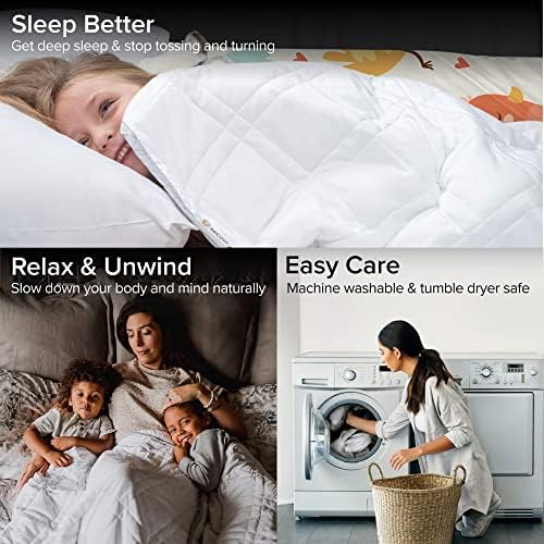 EASY CARE & TRAVEL FRIENDLY – This beautiful white weighted blanket is pre-washed and packaged plastic-free, ready for immediate use. Machine washable at 110°F as needed. Do not wash with other items. On the road? The tote bag included makes it the perfect travel weighted blanket. Great for napping, lounging or sleeping at home & for use on a plane or in a car when travelling.