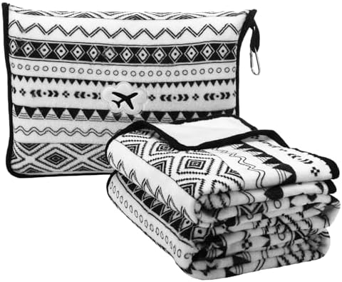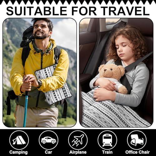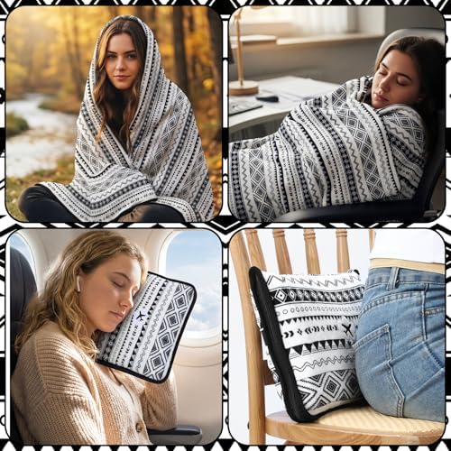Bohemian Aesthetic Appeal: embodying a chic black and white striped Bohemian style, this airplane pillow and blanket set complements both modern and traditional tastes; Its eye catching design enhances any travel ensemble, combining visual appeal with practical functionality