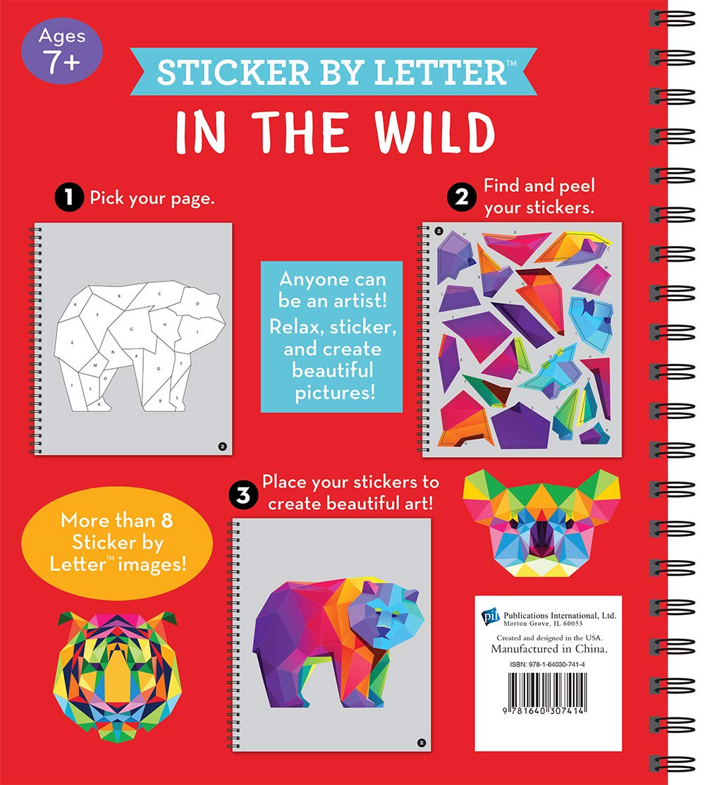 Brain Games Sticker by Letter: In the Wild is a compelling activity to keep your child’s brain engaged to create totally cool art.Includes 10 animal images to sticker by letter.Illustrations are targeted towards kids but all ages can enjoy!Spiral binding and perforated pages make the book easy to use!8 x 10 inch pages. Similar to color or paint by number, this sticker activity book features designs that are divided into spaces, each with a letter, that corresponds to a sticker. Find the sticker, peel it, and place it in the right space. Watch as a full colored image emerges from the original unfinished illustration.