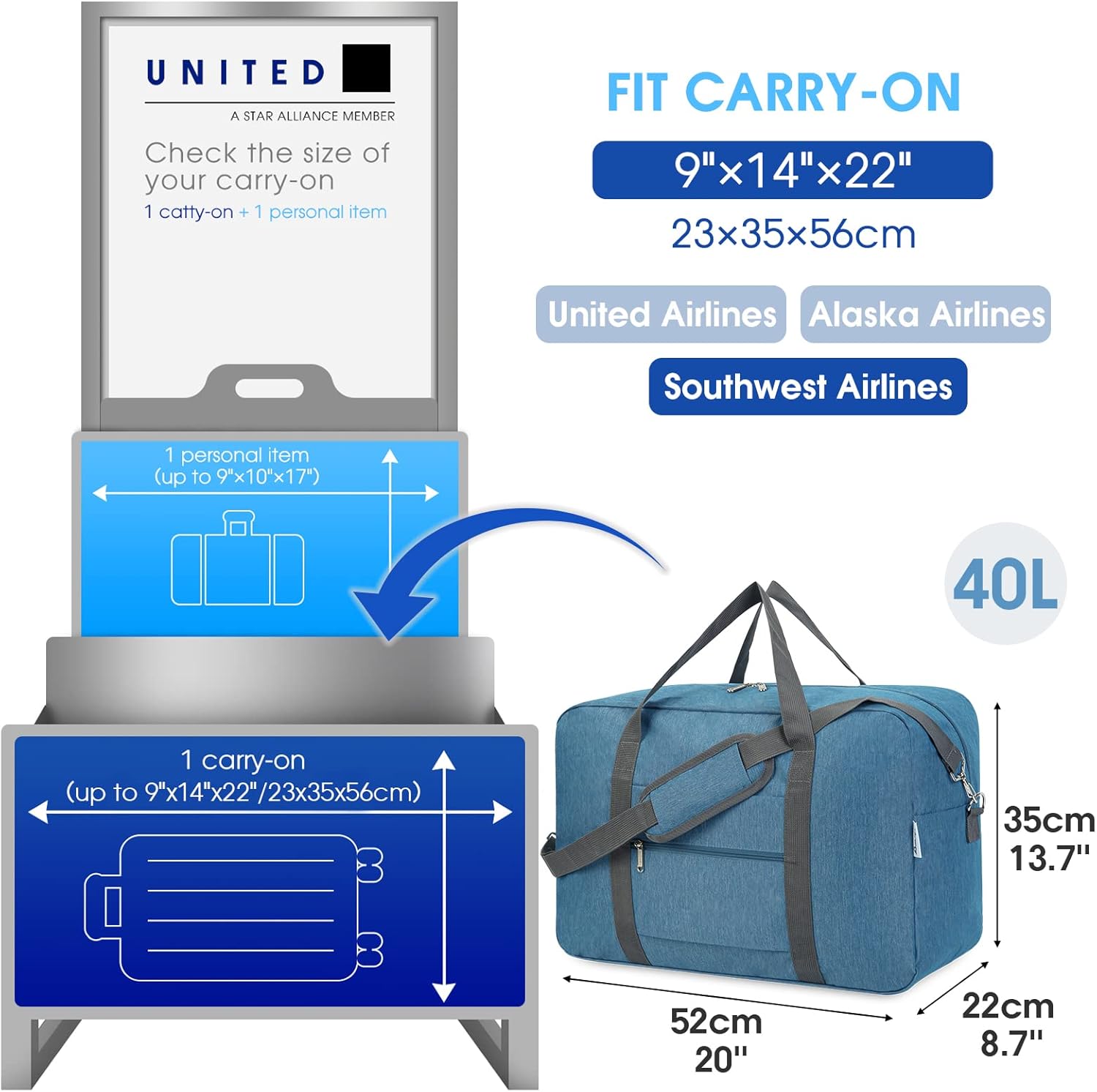 Fit Carry-on Bag Size – Bag size 20 x 13.3 x 8.7 inch fits carry-on item size 22 x 14 x 9 inch of United Airlines, Southwest Airlines, Alaska Airlines, which could be fitted into the overhead bin