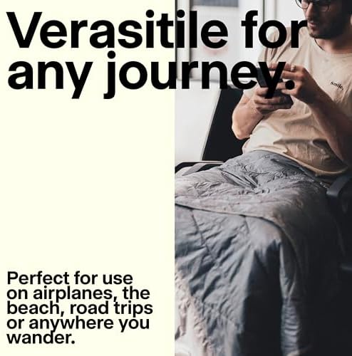 A down camping blanket perfect for everyday adventures: Our ultra-light airplane blanket delivers the perfect balance of warmth and portability. Ideal for camping trips, picnics, or long flights, this down alternative packable blanket fits easily into your suitcase and is machine washable for effortless care.
