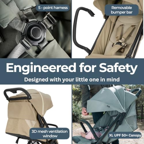 BABY WELLNESS FEATURES: The Quid³ travel stroller offers a 5-point safety harnes & removable bumper bar, large 3D ventilation mesh ventilation window with magnets, soft & padded Jersey fabrics prevent excessive sweating, XL UPF 50+ canopy, BPA & nontoxic.