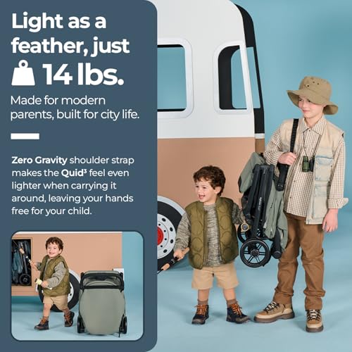COMPACT DESIGN & 1-HAND FOLD: The Quid³ stroller weighs only 14 lbs and has an effortless 1-hand folding system for your convenience. The kickstand feature allows the Quid³ stroller to stand on its own when folded, keeping your baby and stroller clean.