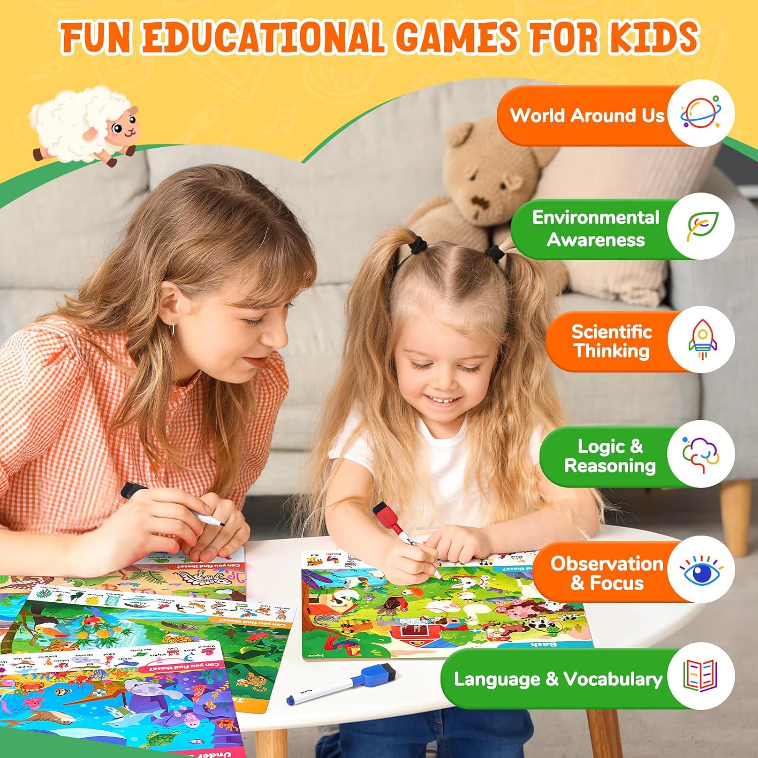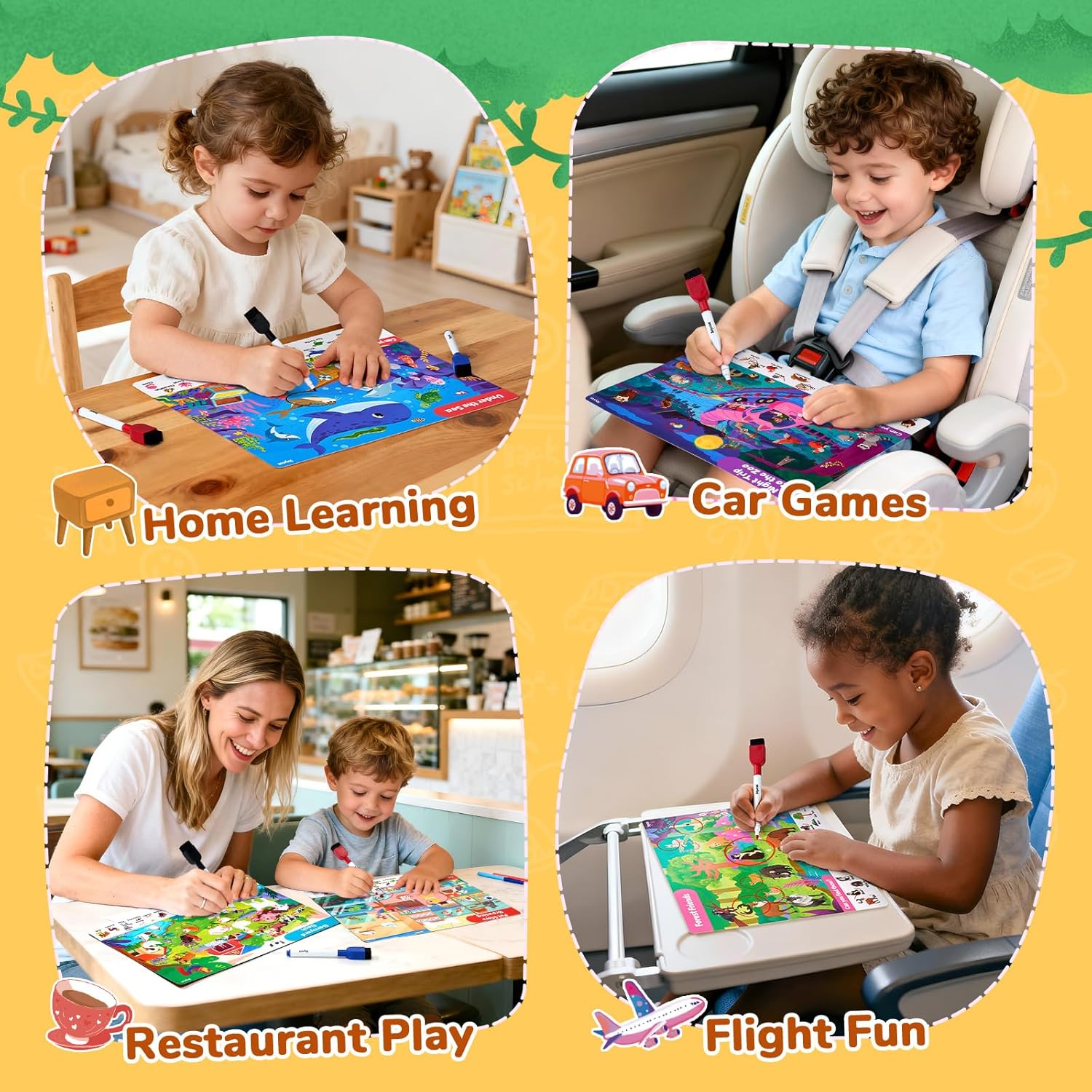 Educational & Engaging: Designed for ages 3-5, these activity mats help boost focus, observation, creativity, and vocabulary. This all-in-one play set keeps little ones happily engaged for hours—completely screen-free.