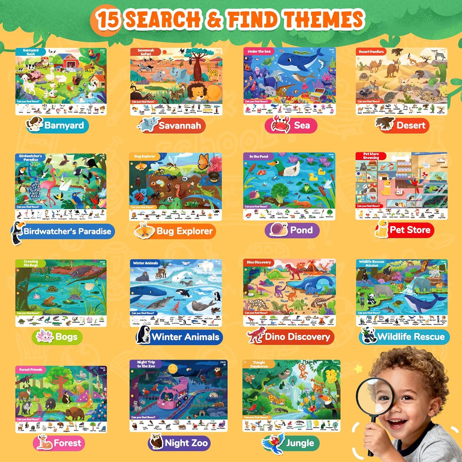 Multi-topic Content: The set takes kids on adventures through 15 different themes like Jungle Jamboree, Barnyard Bash, Savannah Safari, Under the Sea, and more! It’s the perfect blend of fun and learning for ages 4-8.