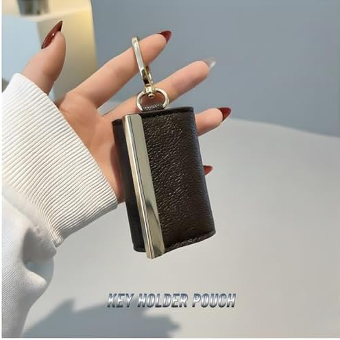 Keychain Tote Bag, Foldable Expandable Mini Tote with Key Ring, Vegan Leather Portable Handbag for Shopping Travel Daily Errands