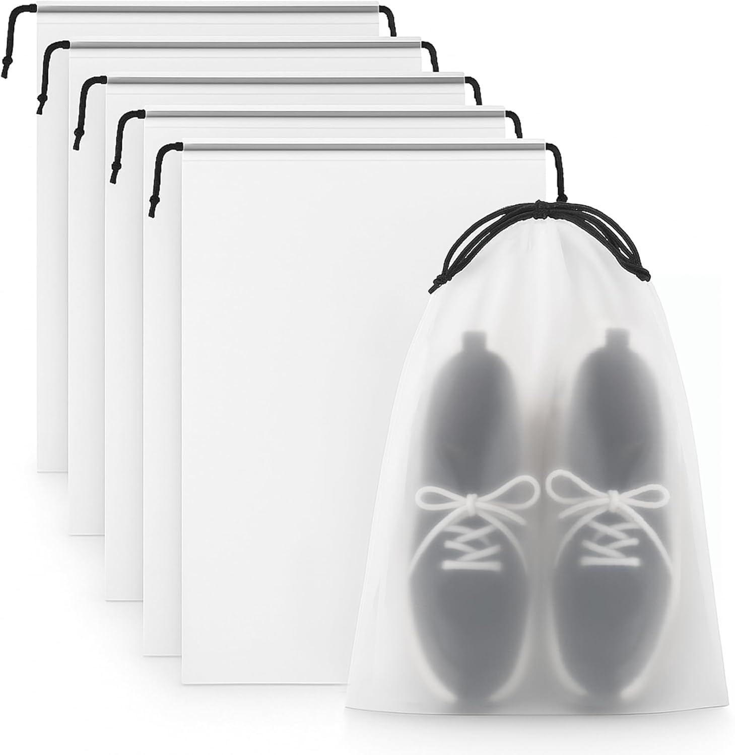 Packing for travel should not feel overwhelming. Homefy large waterproof shoe bags keep you organized, clean, and confident on every journey. Designed with extra room, these travel shoe organizers fit mens boots, heels, sneakers, golf shoes, and even Crocs bag essentials, protecting your footwear and keeping luggage spotless. Each 5 pack set includes reusable drawstring bags made from thick waterproof PE material. The frosted clear design lets you see what is inside without opening, saving time during packing and travel. Whether you are preparing for a family vacation, a weekend getaway, or organizing travel size items for a flight, these bags offer the perfect balance of durability, function, and modern style. More than just shoe storage, Homefy travel bags double as toiletry pouches, laundry bags, gym shoe bags, or packing cubes. Ideal for airplane travel, cruise ships, and road trips, they also work as wet bags or clear plastic bags for home organization. Tear resistant construction and sturdy drawstrings make them a reliable companion wherever you go. From airplane gadgets and cruise essentials 2025 to vacation essentials and daily travel accessories, these waterproof drawstring shoe bags are top airplane gadgets and essential organization tools for women and men. Their eco friendly reusable design helps reduce plastic waste while keeping your packing stress free and beautifully organized. Homefy focuses on practical, thoughtful design, helping travelers simplify their packing with products that combine quality, comfort, and purpose. Wherever your adventure leads, travel smart, stay organized, and pack confidently with Homefy.
