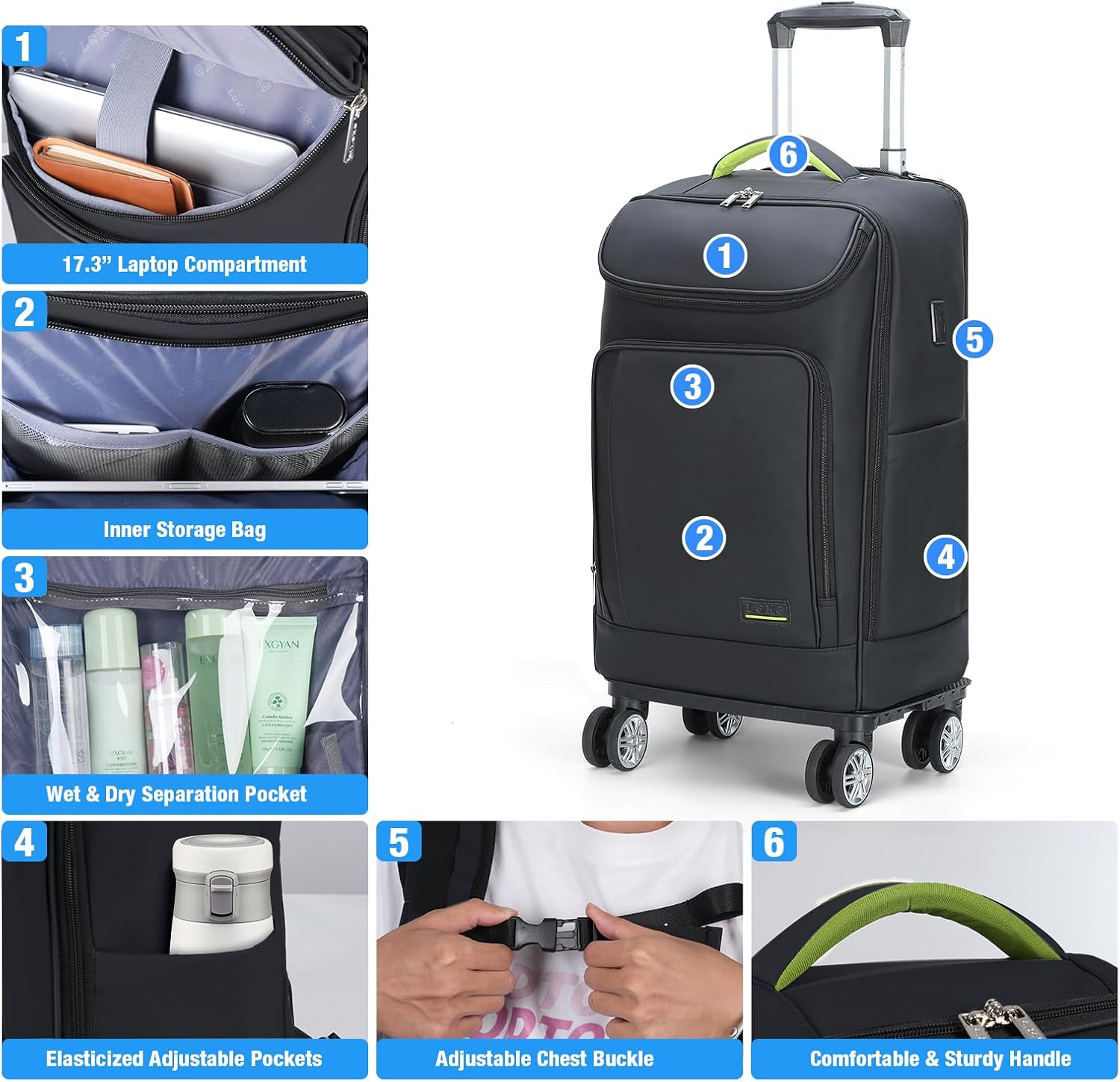 [2025 New Upgraded Version]-Lekebobor rolling backpack has been designed with functionality and comfort in mind. In order to make it more ergonomic, we have extended the length of the handle and added 360° wheels to make it easier and more convenient for your daily travels, making it an indispensable travel companion!