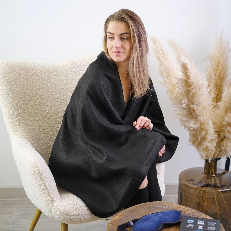 PERFECT GIFT: Set includes super soft cozy fleece blanket (50x38in), inflatable pillow, eye mask, and foam ear plugs – makes the perfect gift for the avid traveler in your life