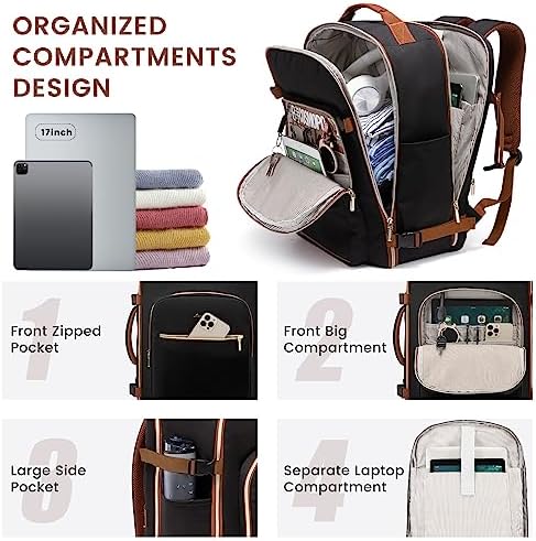 🧳【40L LARGE CAPACITY】Our travel backpacks enable you to pack all your travel essentials for a 3-5 day travel, which can hold 3-5 days’ clothing, a pair of shoes, your wallets, toiletries, a 17.3” laptop, a 12.9” iPad and so on. The side straps can also help you compress the pack when it is too full.