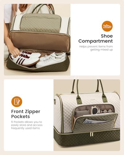 【Versatile Carry Options & Durable】Constructed with high-density, water-resistant materials, this weekender bag for women includes a detachable shoulder strap for various carrying styles, offering both durability and security for all your belongings.