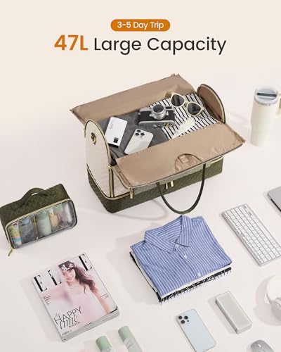 【Spacious 47L Capacity for Travel】Perfect for 3-5 day trips, this duffle bag for travel offers a generous 47L capacity with side pockets and a matching toiletry bag, ensuring all your belongings, from clothes to toiletries, are neatly stored and easily accessible.
