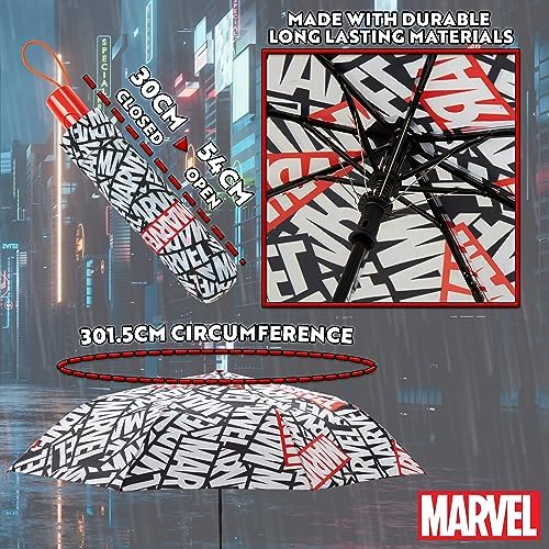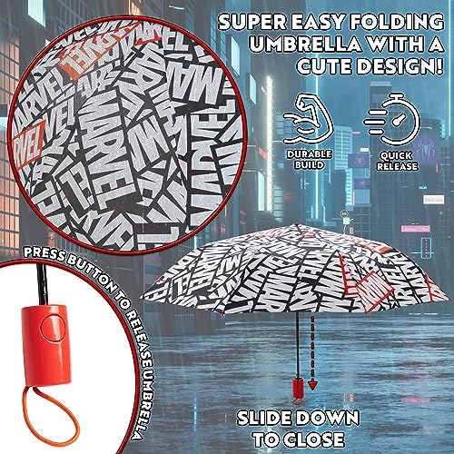 Marvel Design: Bring the excitement of Marvel to rainy day adventures with our compact umbrella. Your superhero fan will be excited for rainy days with this fold up umbrella!