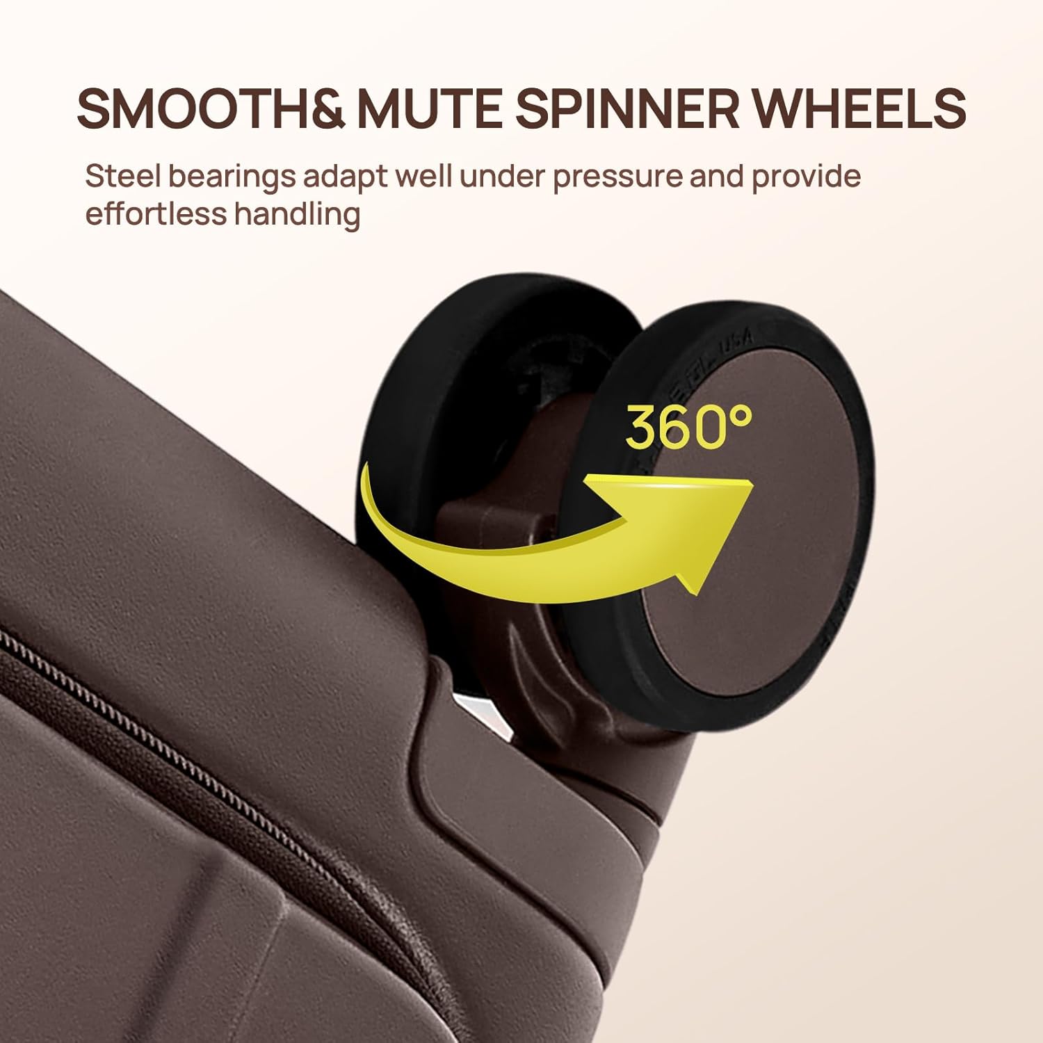 【Effortless Mobility System】Engineered with 4 silent double spinner wheels and a durable aluminum telescoping handle featuring <15mm wobble tolerance, this suitcase delivers precise, stable maneuverability in all travel environments. The precision wheel system glides effortlessly across surfaces, while the ultra-stable handle maintains comfortable control during extended use.