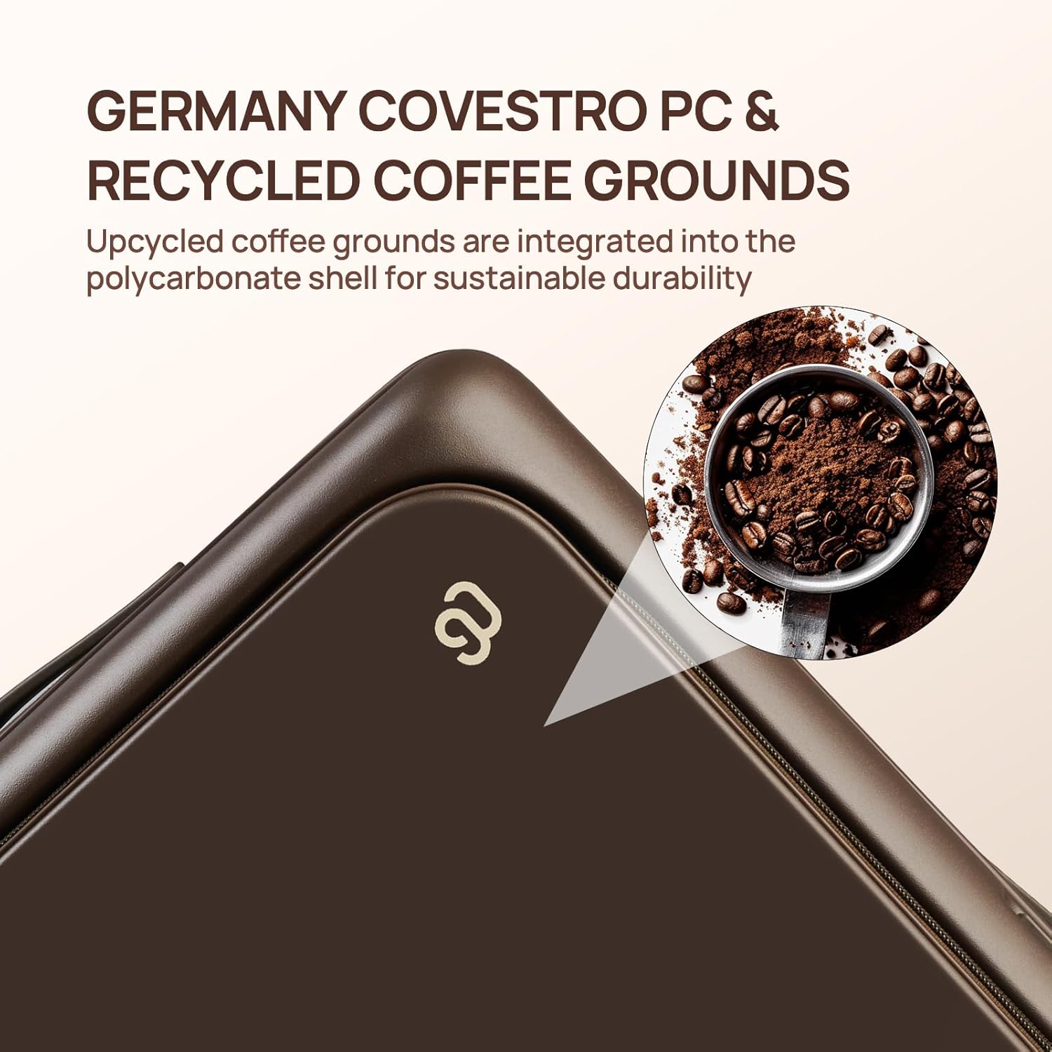 【Eco-Conscious & Rugged Construction】Crafted with Germany Covestro polycarbonate and recycled coffee grounds, this innovative hard shell delivers scratch-resistant, shock-absorbing, and compression-proof protection. By repurposing coffee waste into durable travel gear, we transform everyday sustainability into extraordinary resilience – just like turning morning coffee into lasting strength.