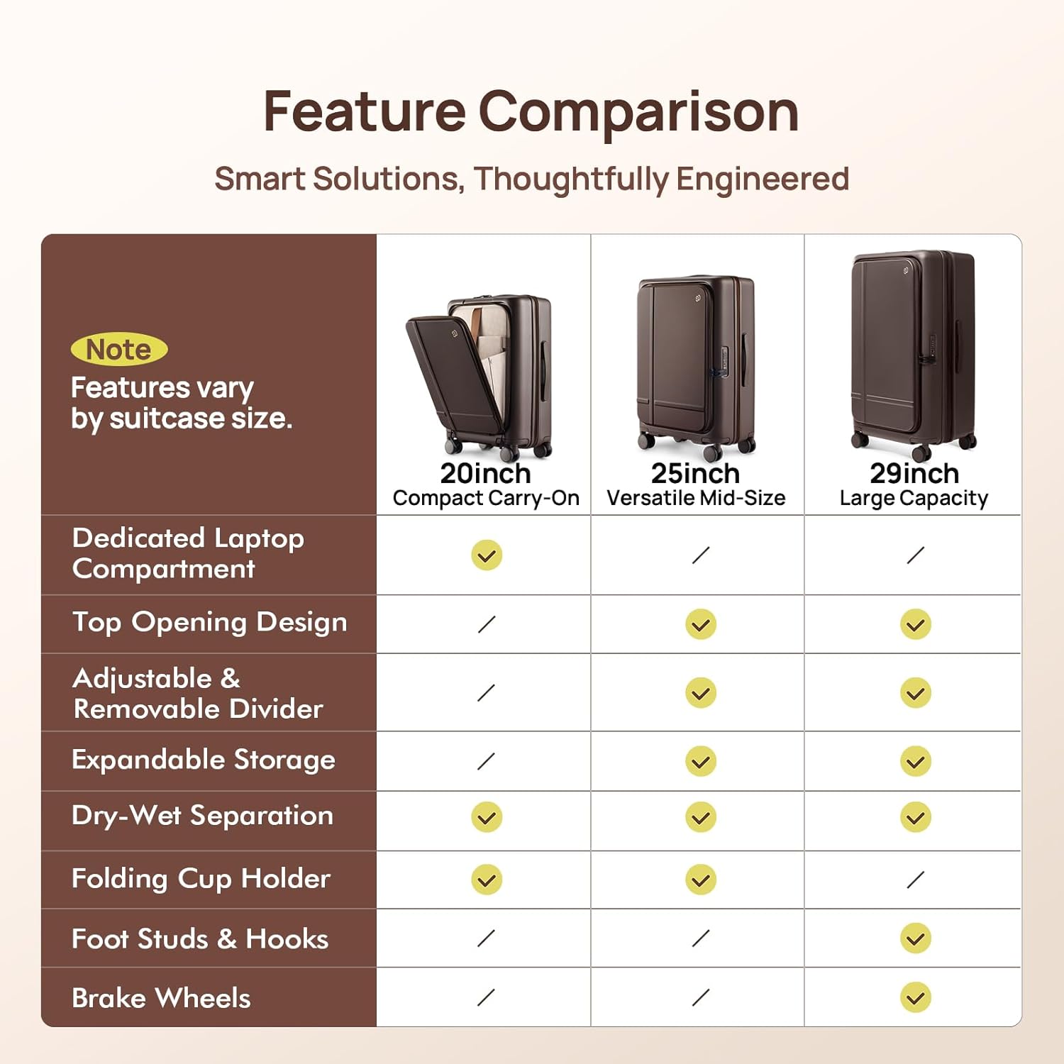 【Airline-Approved Compact & Travel Convenience】This perfectly sized 22x14x9-inch carry-on (wheels included) easily fits most airline overhead bins. Features an innovative all-in-one step flip-down cup holder that securely accommodates 12-30oz tumblers or umbrellas – ready to use instantly with no setup required.