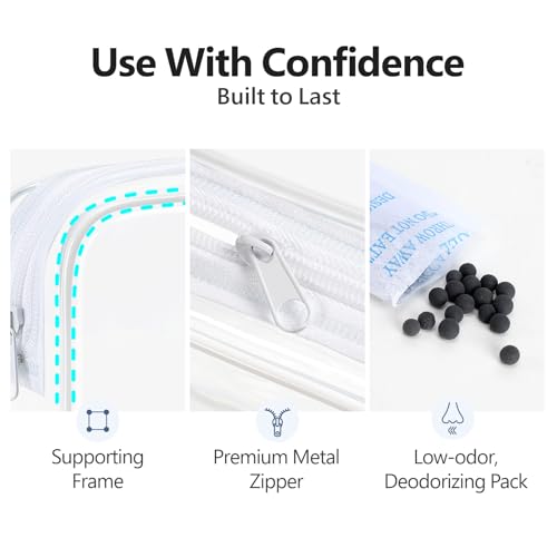 See-though & Reinforced Seams: The clear toiletry bag is made of 0.3 mm thick transparent PVC, make you easier to spot your items, and ensure the security staffs check the items quickly; Reinforced seams prevent the bag splitting easily, to effectively reduce the liquids leak out from this bag (zipper is not waterproof)