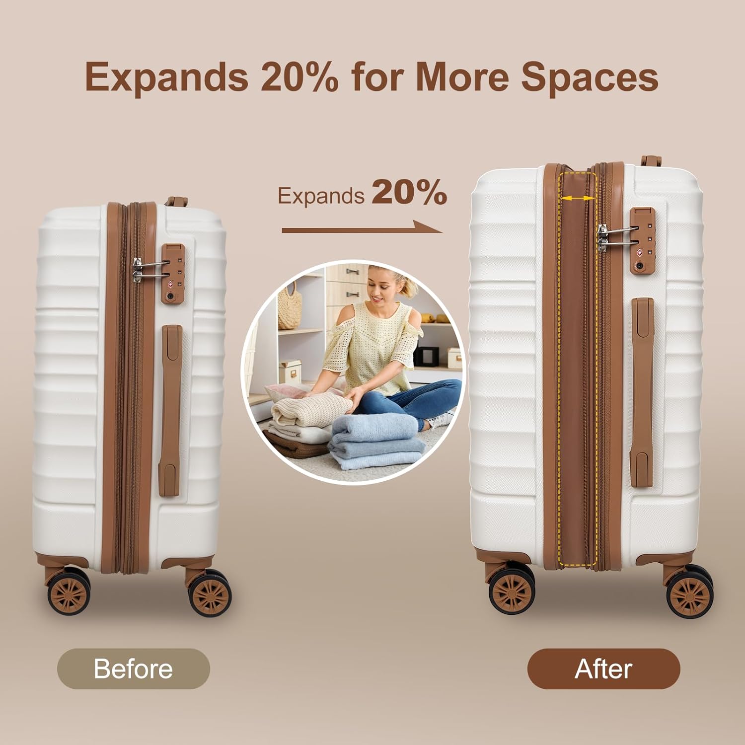 Expandable Airline Approved Suitcase: 21 Inch Carry on Luggage with Wheels. Best carry on suitcase for plane on 3-5 day trips.Opening the smooth and durable expandable zipper can expand its capacity by 20% for bringing back souvenirs and additional items.