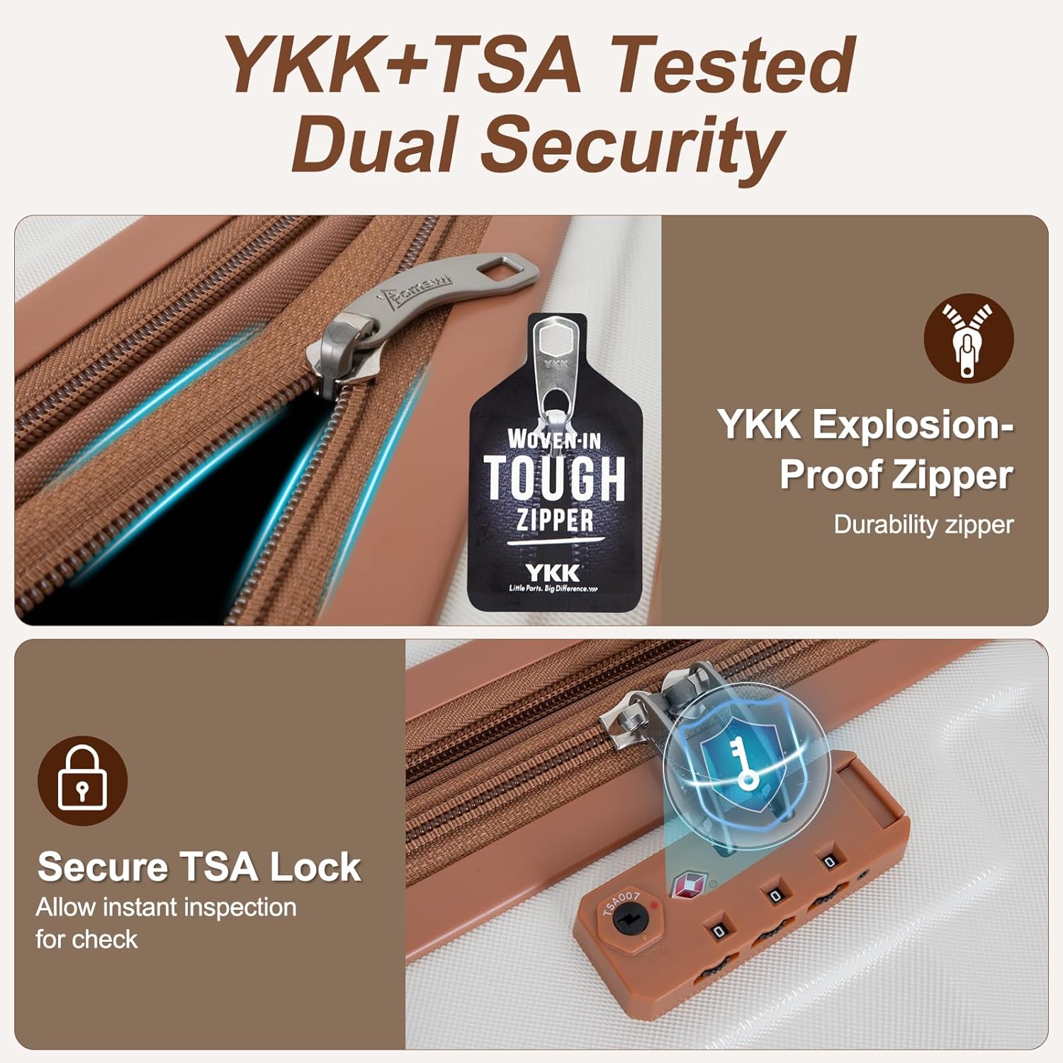 TSA Lock and YKK Zipper: Travel Suitcase with TSA-approved dual locking system keeps luggage secured. Authentic YKK zippers come with superior durability and smooth operation.