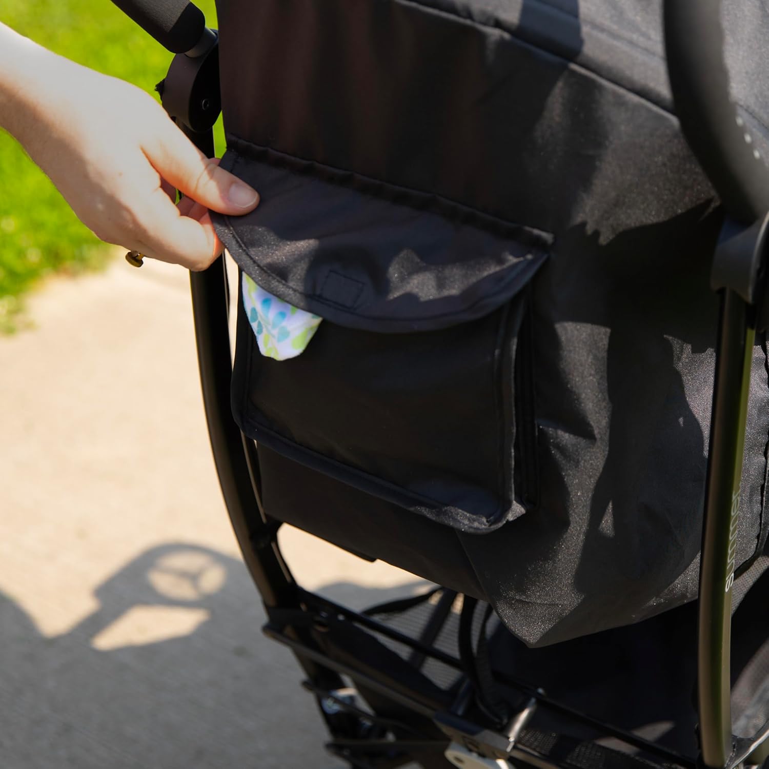 Anti-shock front wheels provide a smooth ride for them and easy maneuverability for you, while lockable rear wheels offer security when you need it most