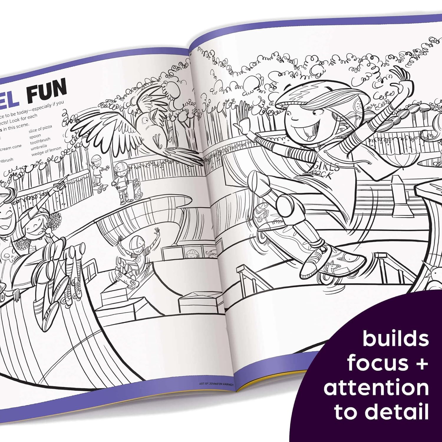 Every puzzle solved will boost kids’ confidence and encourage them to take on new challenges. Kids (and grown-ups, too) will need to keep their eyes peeled searching through hilarious scenes like sloths playing ping pong, dogs enjoying a fiesta and a fishy carnival. There are both full-color and classic black-and-white brain games to solve, each one created to bring meaningful benefits and maximum fun!