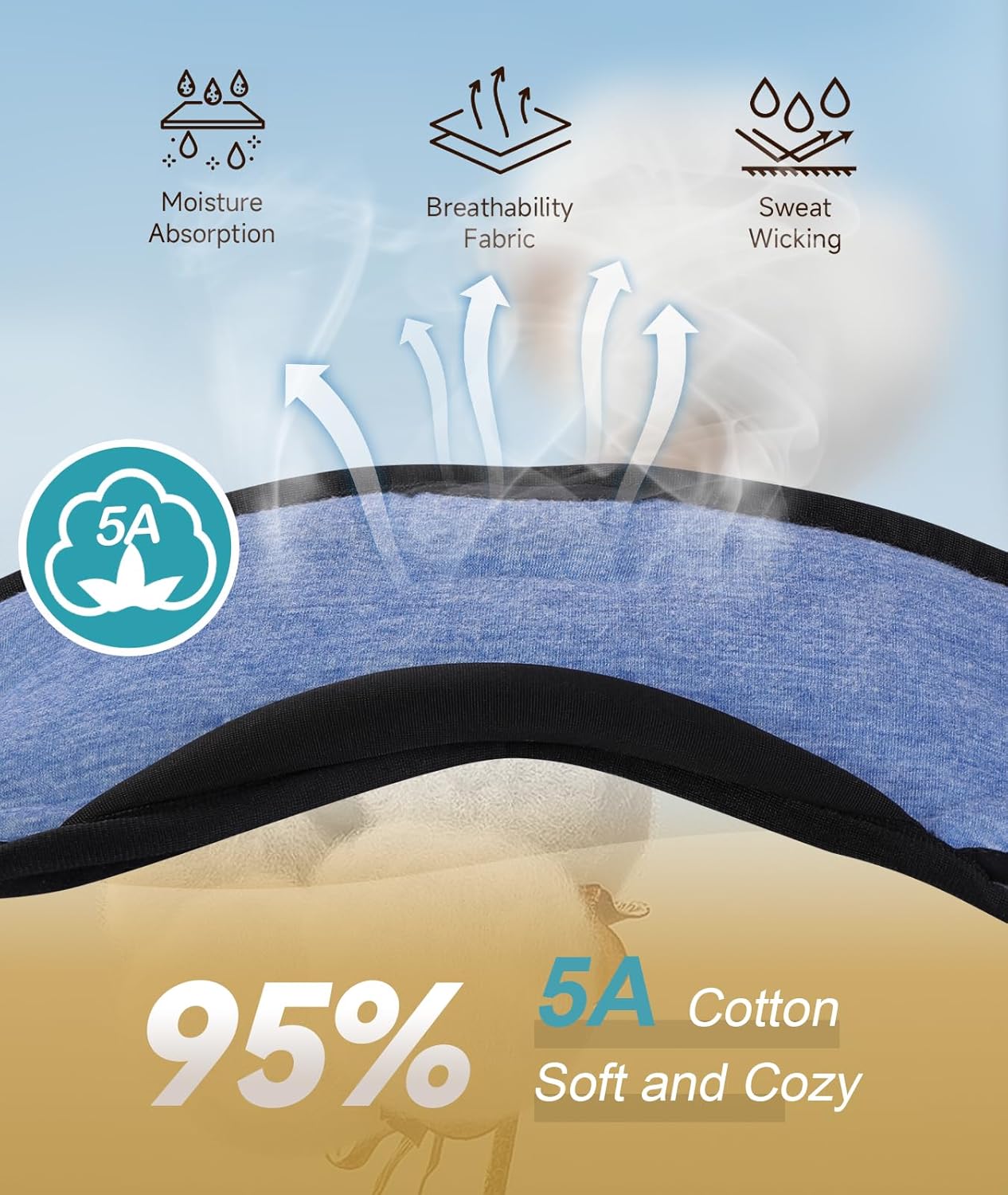 95% 5A COTTON SLEEP MASK: TOPOINT Sleep Mask is made from soft and elastic 95% cotton,provides a warm and soft feeling, perfect for chilly seniors to cold. Fabric liner of the bluetooth eye mask headphones separated from stitching is not defective, it is the place to take out the bluetooth module, so you can full wash the bluetooth sleep mask