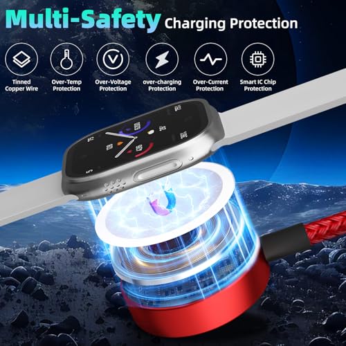 【Durable & Long-Lasting Materials】Crafted with high-density braided nylon and reinforced strain relief, this apple watch charger resists over 20,000 bends. Aluminum alloy connectors enhance durability and heat resistance—built to withstand everyday wear and tear