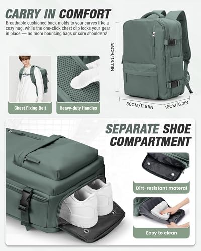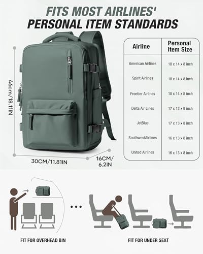 Large capacity Pockets: The size of this backpack is 46*30*16CM.The other small pockets of the backpack are very suitable for storing water bottles, umbrellas or other small items that need to be accessed quickly.There is also a hidden anti-theft zipper pocket on the back of the backpack to prevent your valuables from being stolen.Additionally, it meets the carry-on size requirements for airlines, helping you save on airline check-in fees.