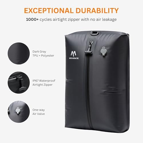 【Secure & Private Storage】The sleek dark gray design of these vacuum bags for clothes ensures privacy by concealing packed items. The vacuum bags storage features an IP67 waterproof zipper, protecting your belongings from water and dust, keeping clothes dry and fresh during travel or storage