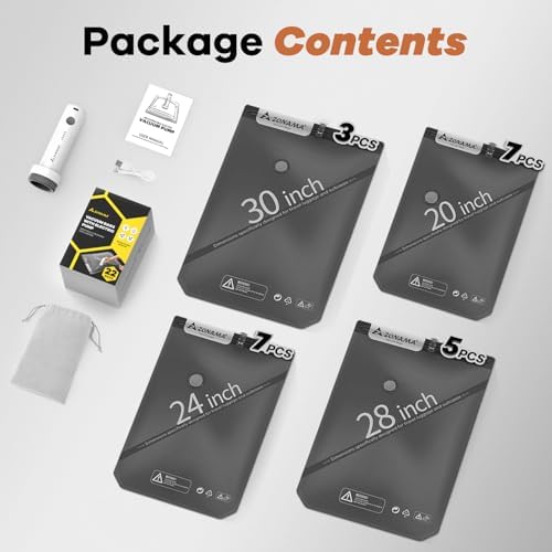 【Premium Durable & User-Friendly Design Vacuum Bags】These vacuum storage bags are crafted from extra-thick, tear-resistant PA+PE material for long-lasting reuse. rounded design of the bag’s 4 corner helps prevent scratches and snags, each bag is marked with size so that you can quickly identify the right bag for your items without guesswork