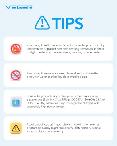 【What You will Get】: A VEGER 10000mAh portable charger with built in cables, 1x user manual, our worry-free 12 month guarantee and 7 Day/24H friendly customer service. If you have any problems, please contact us and we will solve it within 12 hours.