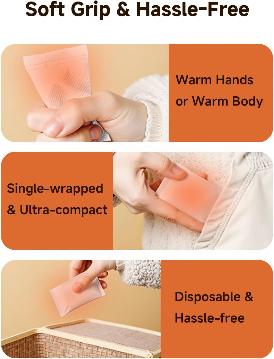 10hrs Long Lasting Warmth-Don’t just get warm—stay warm. These premium hand warmers are meticulously engineered for steady thermal performance, delivering reliable, comfortable heat for over 10 continuous hours. Whether you’re working outdoors, attending an all-day event, or exploring winter trails, you can trust in the lasting warmth of our disposable hand warmers. They outperform standard warmers, providing consistent comfort from morning until night, even in the coldest conditions.